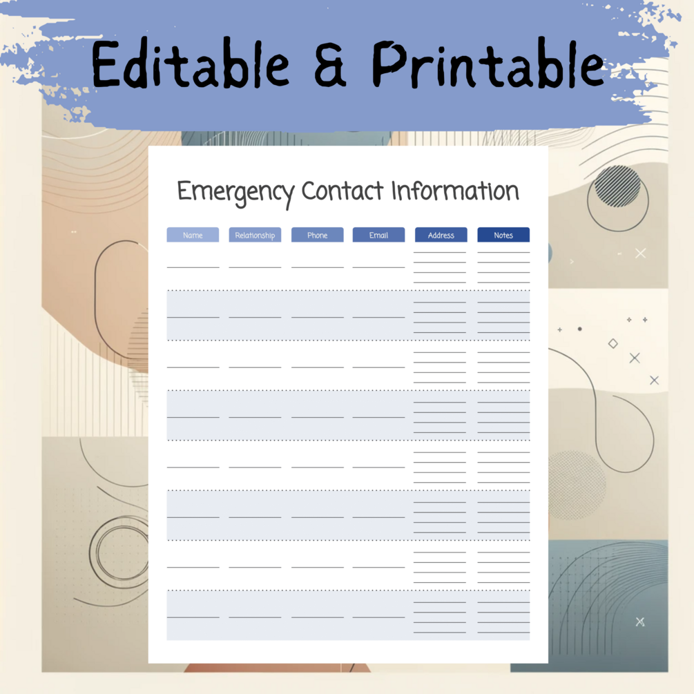 Ensure your family's safety with our Family Emergency Contact Info Template. This essential tool allows you to neatly organize and access crucial contact information in emergencies. It includes space for names, relationships, phone numbers, and more. Ideal for busy families, it's designed to be printed, filled out, and kept handy for immediate reference. A must-have for every household!